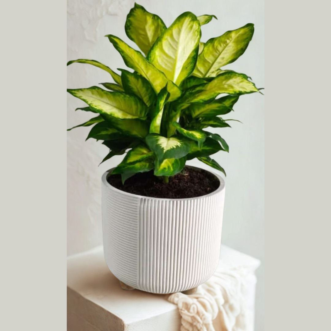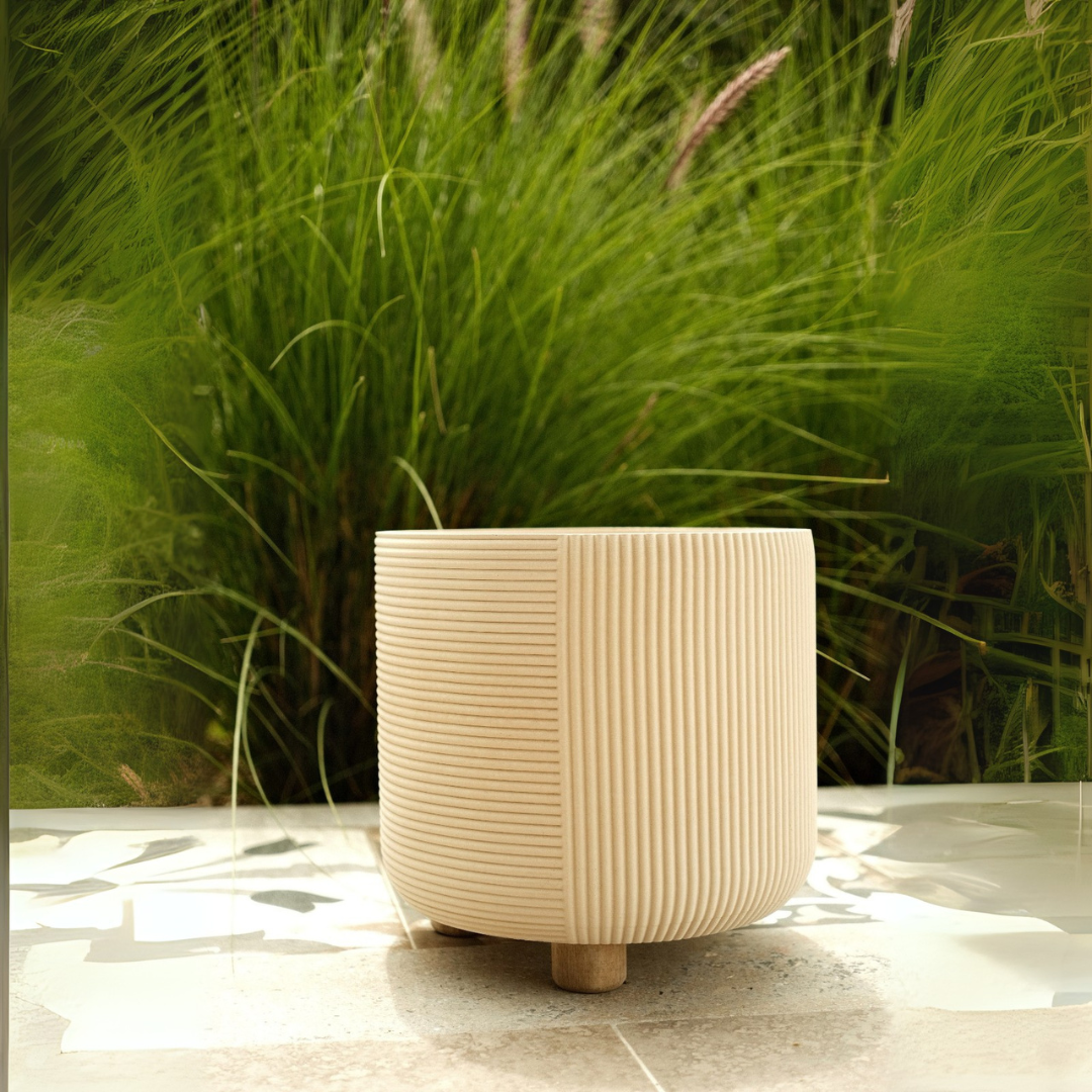 Una matera elegante de diseño geométrico y acabado moderno, perfecta para destacar plantas grandes en cualquier espacio. Disponible en colores neutros, blanco, beige, gris y bisque, combina sofisticación y versatilidad para realzar la decoración de tu hogar.